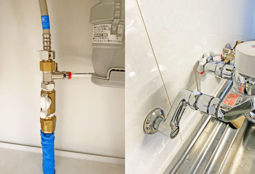 アンダーシンクの水栓を分岐する基本設置工事(分岐例)