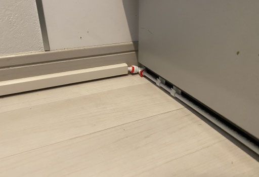 アンダーシンクなど水栓を分岐できる箇所からサーバーへ給水するためのチューブを設置し、分岐した水栓と本体を、目立たないように敷設した専用チューブと接続します。物件に合わせた工事なので賃貸物件でも安心してご利用いただけます。